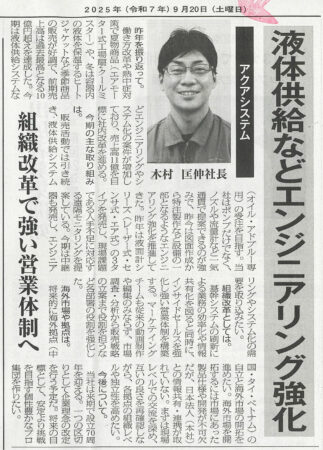 日本産機新聞 2025年09月20日号に広告と記事掲載して頂いております。