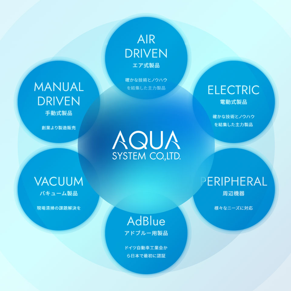 圧縮エアを利用した技術で液体移送、モーターを駆動する商品が得意です。電気を使わず、防爆地域で安全に利用できる商品を数多く取りそろえ、ポンプ・エアのコアテクノロジーを基に、安全な現場作業のお手伝いをいたします。