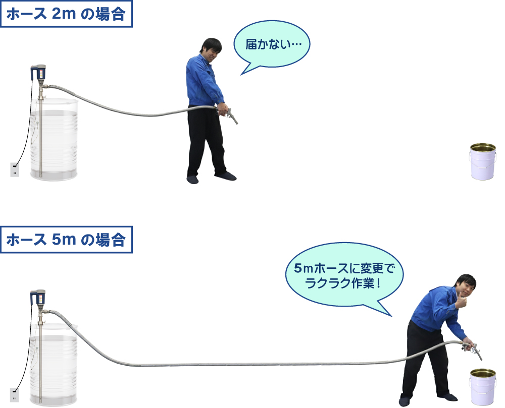 ホースにカプラーを取り付けるだけで、設備のタンクに接続できます