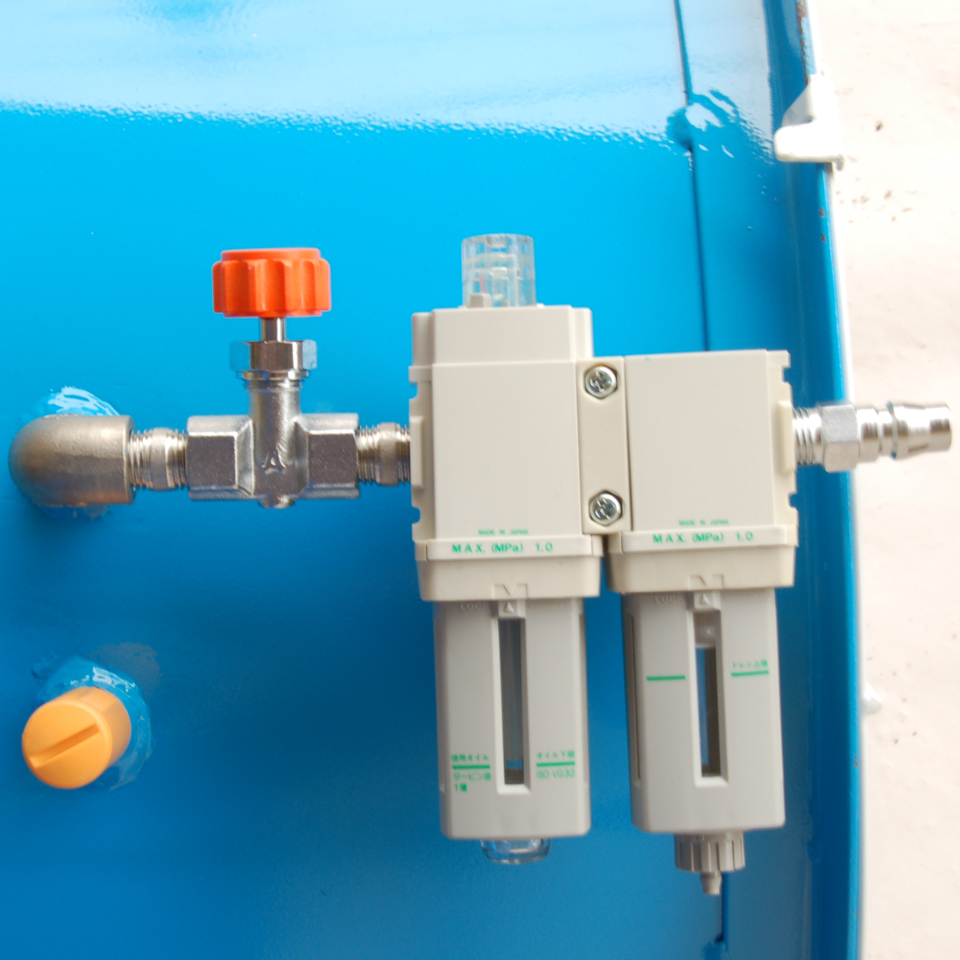 コンプレッサー(圧縮空気)・フィルターからの圧縮空気を任意の圧力に調整します。