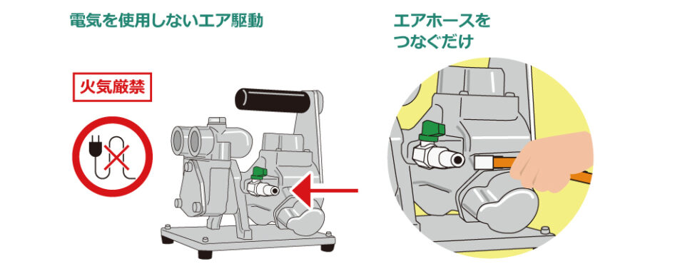 防爆地域で使用でき、持ち運びが容易なエア式ハンディポンプ