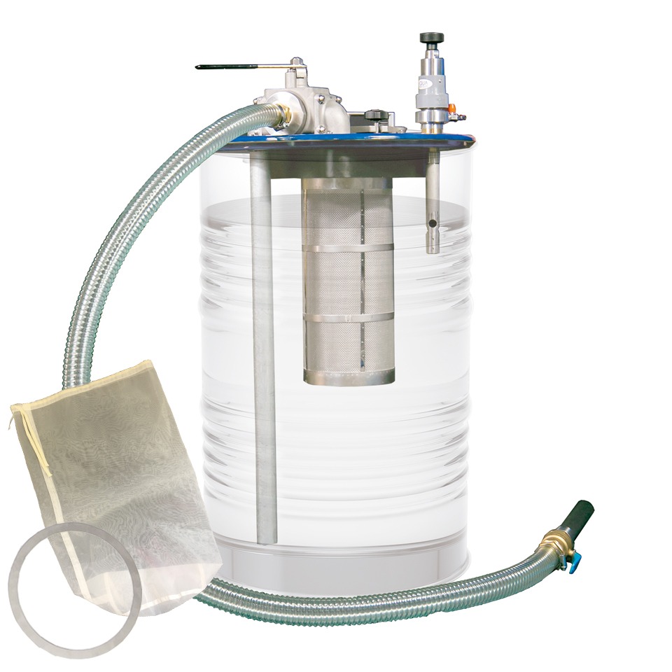 切削機械のオイル交換が面倒で手間、切粉のみを除去したい、悪臭の出る前に交換をしたい、潤滑油を再利用しコスト削減したい、加工精度を向上させたい、工具寿命を延ばしたい等々あらゆる吸入・ろ過・吐出が可能になります。ご使用の200Lオープンドラム缶を使用し、ろ過クリーナーとして使用可能になります。また電気を使用せず、エア駆動のため火災や漏電の心配がありません。