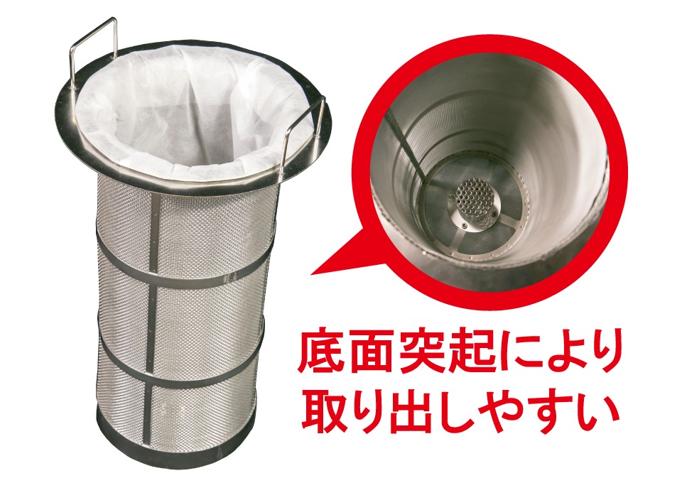 | 付属品 | フィルタ | SUS 40メッシュ | 不織布2枚 400メッシュ相当 | バッグフィルタ3枚 100メッシュ相当 | バッグフィルタ3枚 200メッシュ相当 |