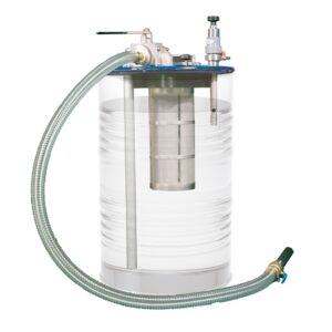 切削機械のオイル交換が面倒で手間、切粉のみを除去したい、悪臭の出る前に交換をしたい、潤滑油を再利用しコスト削減したい、加工精度を向上させたい、工具寿命を延ばしたい等々あらゆる吸入・ろ過・吐出が可能になります。ご使用の200Lオープンドラム缶を使用し、ろ過クリーナーとして使用可能になります。また電気を使用せず、エア駆動のため火災や漏電の心配がありません。