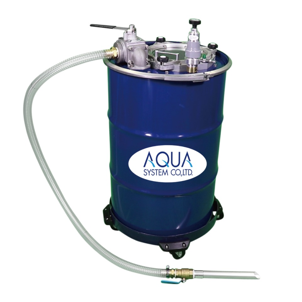 - 圧縮空気によりドラム缶内の液体を押し出します