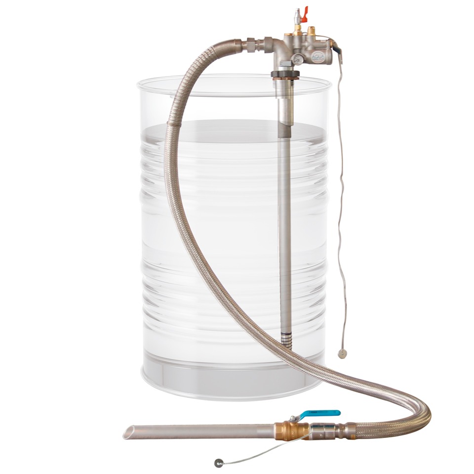 ドラム缶に減圧した圧縮エアを挿入し、ドラム缶の内圧を変化させることにより液体を吐出・吸入するポンプです。 流路に障害物がないため、異物の混入した液体や粘度(3,000cPまで)のある液体にも対応でき故障がありません。 また、エア式ですので引火、爆発の恐れのある液体や環境でも使用できます。※流量計・ガンノズル付は異物混入不可