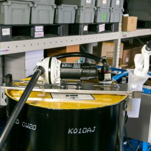 ドラム缶上部に確実に固定する為安全に使用できます。オプションでトロリー付の移動型にも変更可能です。