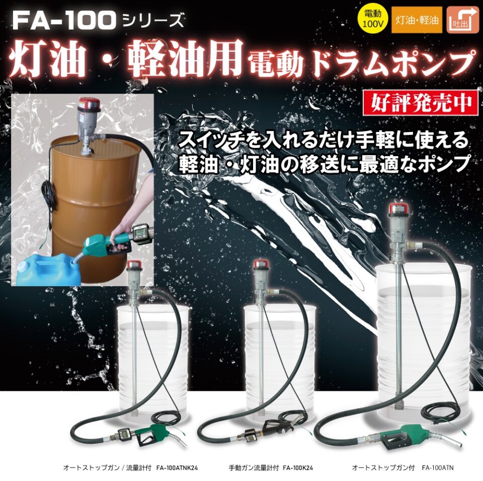 - 便利な家庭用電源AC-100Vのドラムポンプ