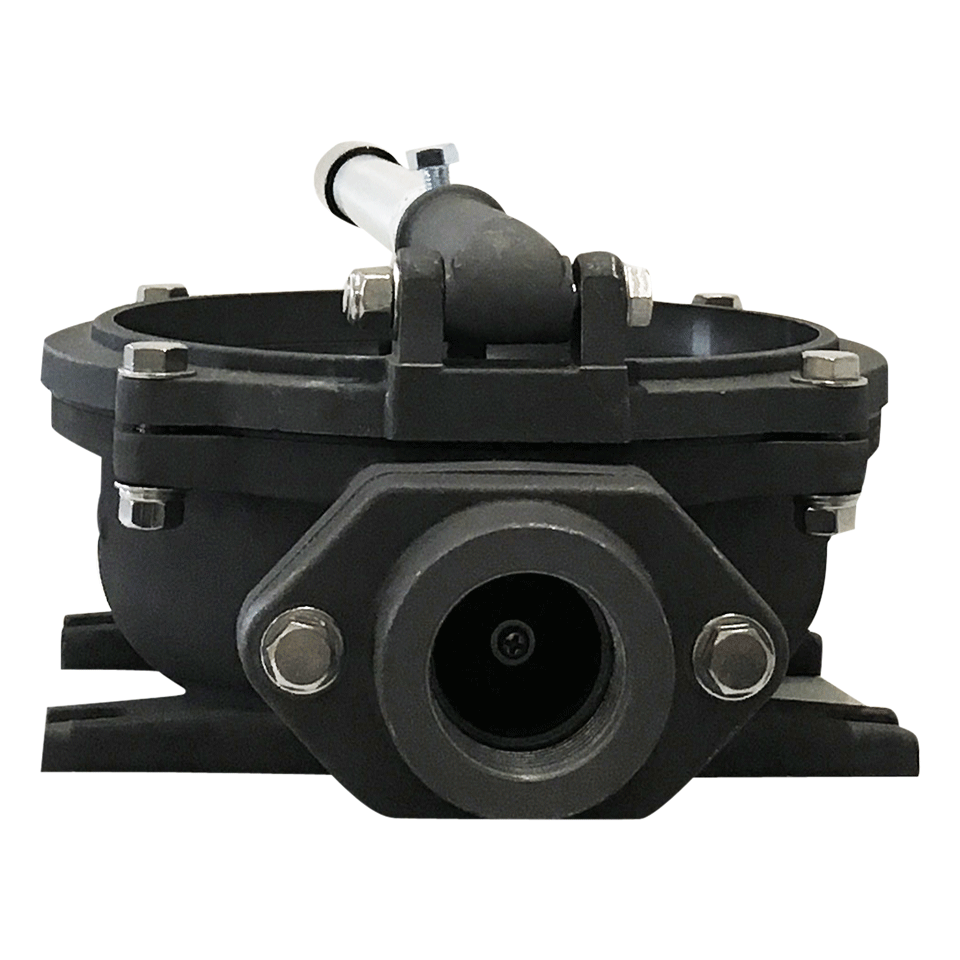 ダイヤフラム(膜)と2つの弁で構成されるポンプです。ダイヤフラムを上下または左右に運動させて容積を変化させ吸込・吐出を行います。