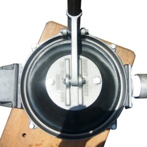 ダイヤフラム(膜)と2つの弁で構成されるポンプです。ダイヤフラムを上下または左右に運動させて容積を変化させ吸込・吐出を行います。