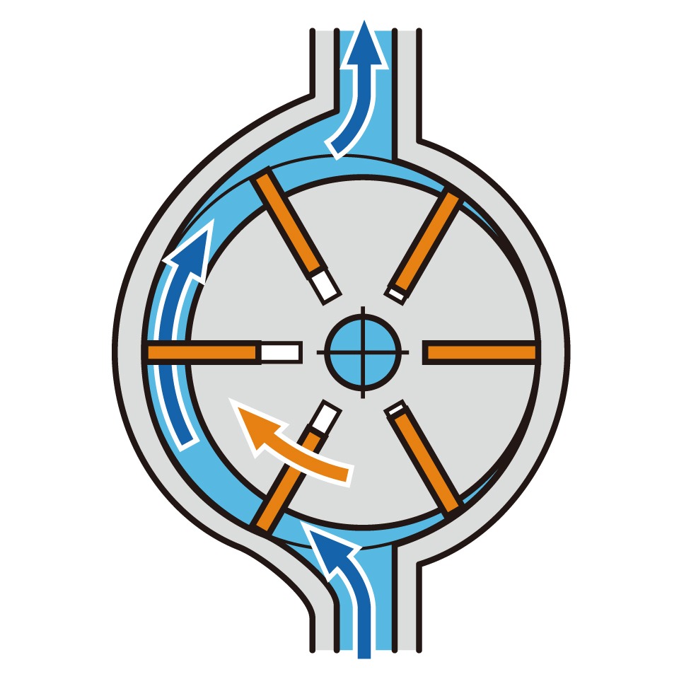 内部のベーンによって液体を移送するポンプです。手で回転動作することで吐出し、操作が容易なポンプとして使用されます。
