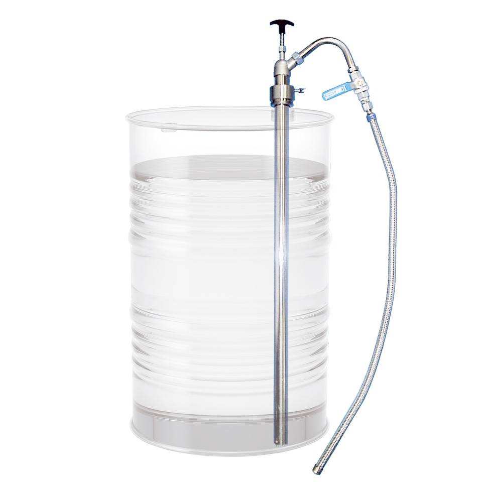 1ストロークの吐出量が600cc。ドラム缶から少量の液体を取出すのに最適なポンプです。