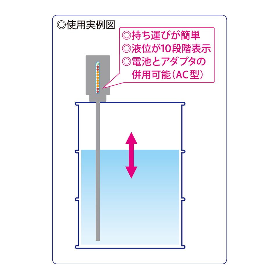 ※乾電池でご使用の場合、単3乾電池2本必要 - 10段階のLEDで液面表示